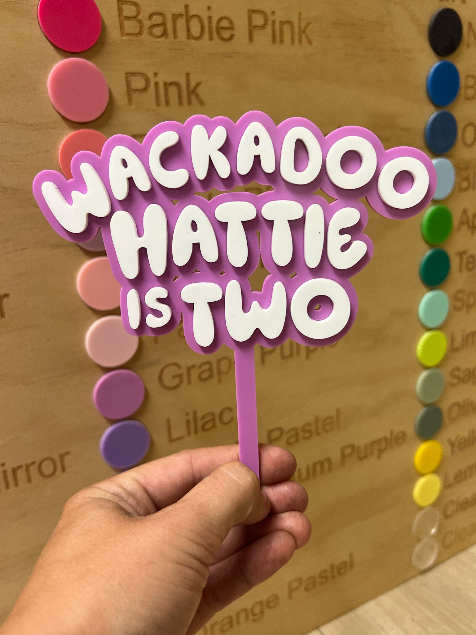 Wackadoo! Celebrate your little one’s special day with our Bluey-inspired cake topper! Customisable with your child’s name and age, this playful topper is available in a vibrant range of acrylic colours to match any party theme. Perfect for adding a touch of Bluey magic to your celebration!